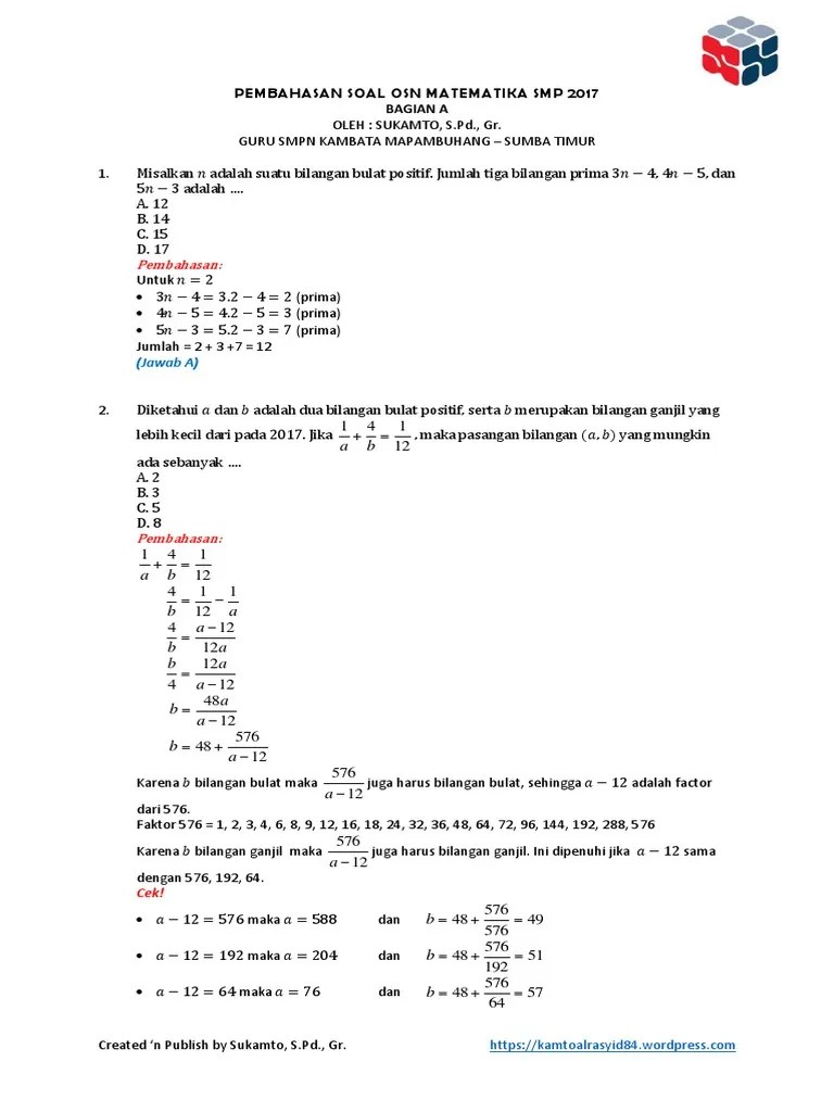 Latihan Soal Persiapan Osn Matematika Smp 2019 - Kunci Jawaban Dan Pembahasan Osn Matematika Revisi Id : Pembahasan soal osn ipa smp 2019 tingkat kabupaten ilmusosial id.. Download kumpulan soal osn smp matematika beserta pembahasan dan kunci jawabannya. Pakar bedah soal + materi. Soal lcc sd dan kunci jawaban 2019. Latihan soal olimpiade matematika sd persiapan winter camp 2017. Buku penunjang olimpiade osn matematika sd: